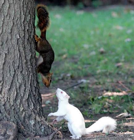 与普通松鼠相比,白色松鼠皮毛颜色过于醒目。图源:sina.com