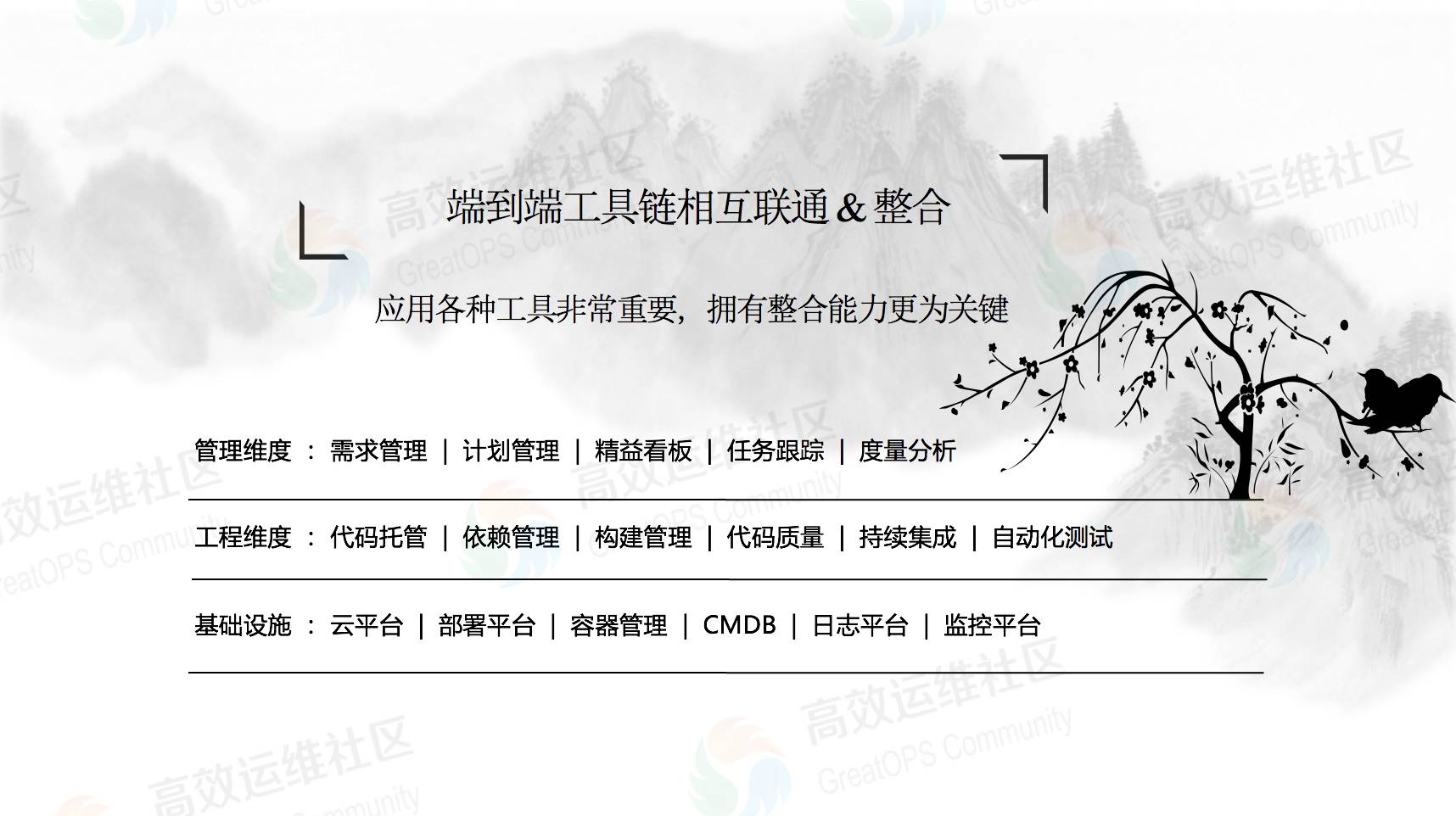 DevOps的法:全局打通敏捷研发与高效运维,实现端到端的交付过程。