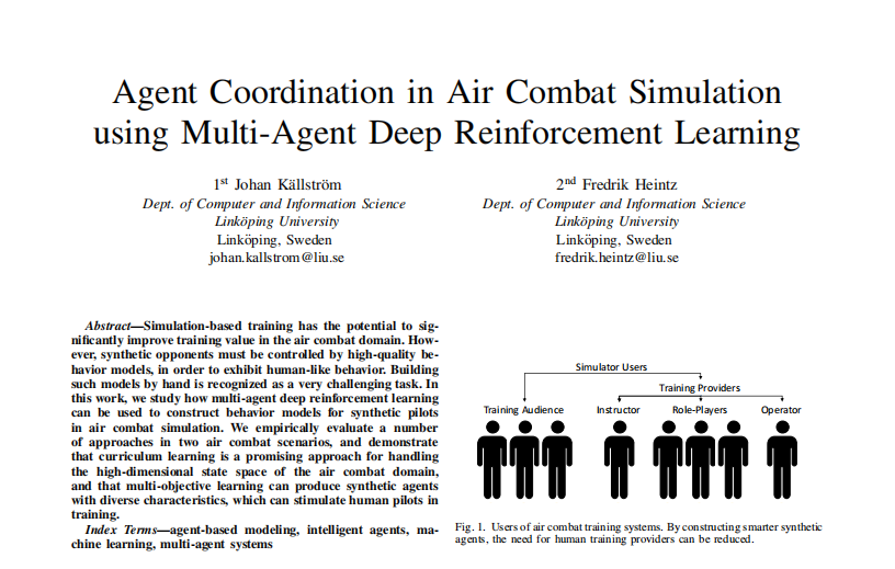 便捷下载,请关注专知人工智能公众号(点击上方蓝色专知关注) 后台回复“ACACS” 就可以获取《《基于多智能体深度强化学习的空战模拟智能体协作》瑞典林雪平大学》专知下载链接