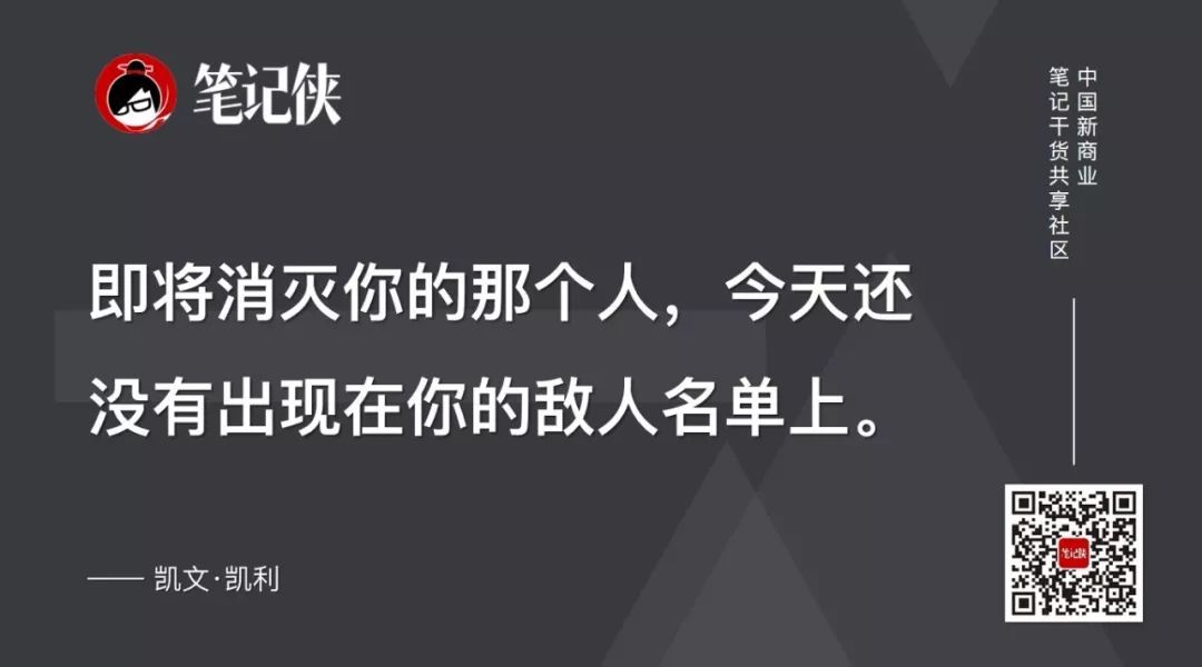 2014年,我曾在北京碰到凯文·凯利,当时马化腾问他“谁是消灭腾讯的对手”?凯文·凯利说的一句话让我至今印象深刻,他说:“即将消灭你的那个人,今天还没有出现在你的敌人名单上。”