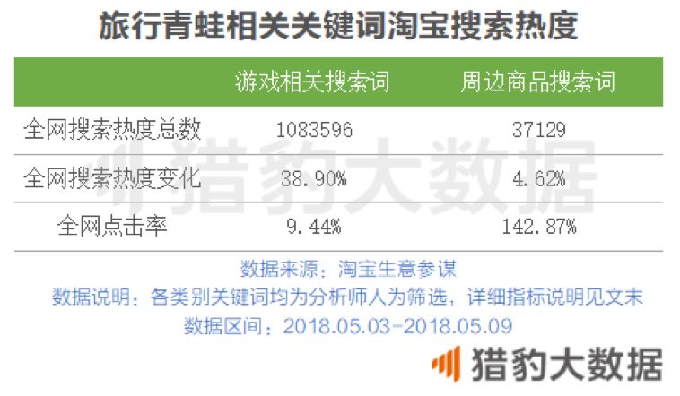 淘宝生意参谋的数据显示,游戏相关搜索词在预热到上线的这7天内有明显上涨,但周边商品搜索词仅上升4.62%,游戏带动的效果并不明显。