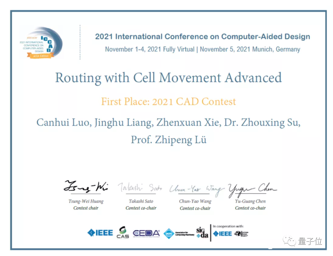 了中国团队在EDA领域国际会议ICCAD 2021上,获得了CAD Contest布局布线算法竞赛的第一名。