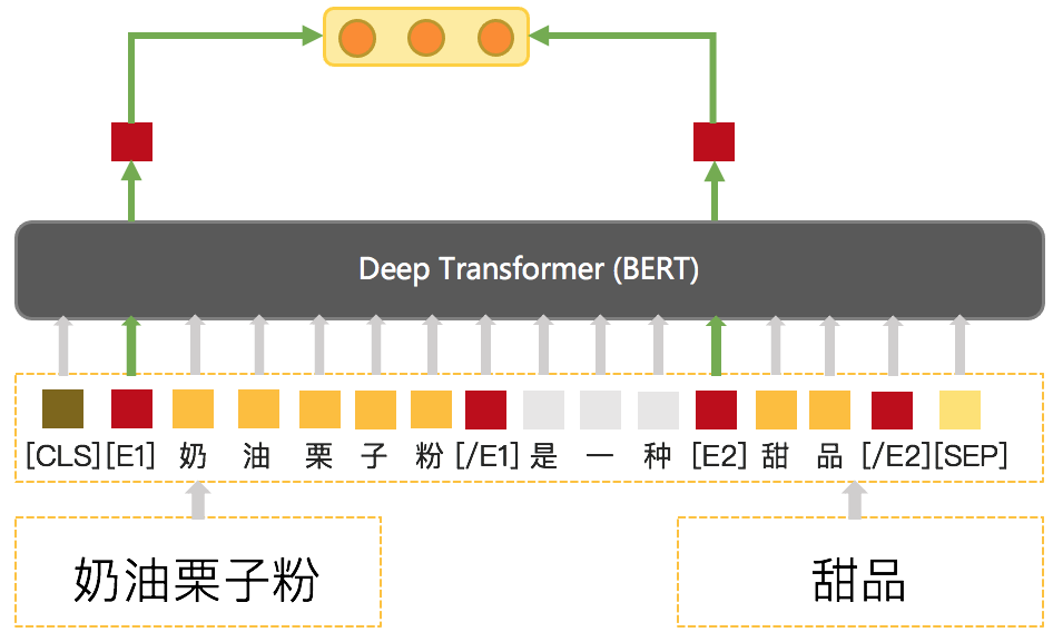 预训练语言模型近两年来在NLP领域取得了很大的进展,基于大型的预训练模型微调下游任务,是NLP领域非常流行的做法。因此,在关系挖掘中期,我们采用基于BERT(参考《美团BERT的探索和实践》一文)的关系判别模型,利用BERT预训练时学到的大量语言本身的知识来帮助关系抽取任务。