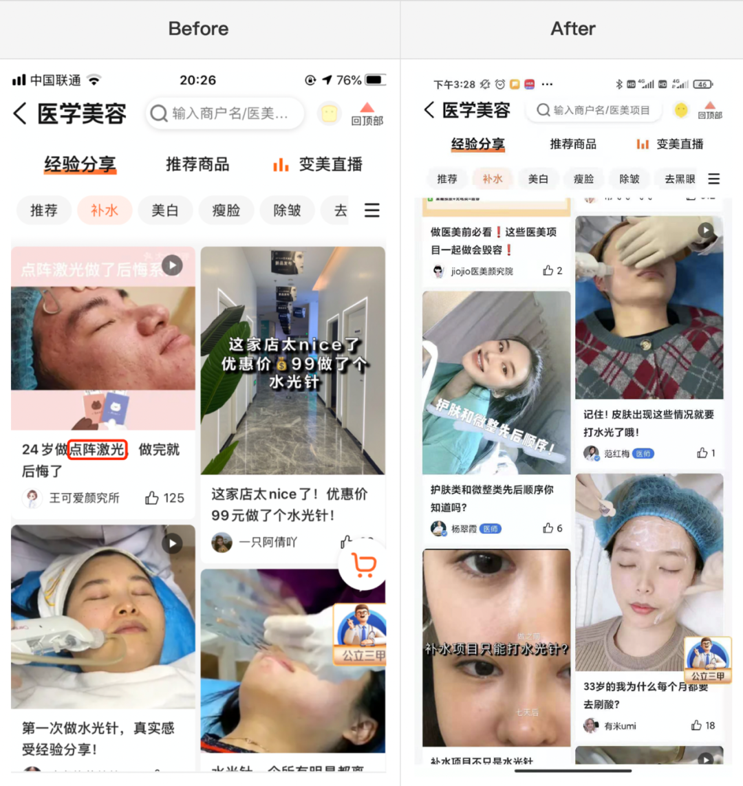 在医美内容展示上,用户通常会对某一特定的医美服务内容感兴趣,所以在产品形态上会提供一些不同的服务标签,帮助用户筛选精确的医美内容,精准触达用户需求。但是在标签和医美内容进行关联时,关联错误较多,用户筛选后经常看到不符合自己需求的内容。提升打标的准确率能够帮助用户更聚焦自己的需求。