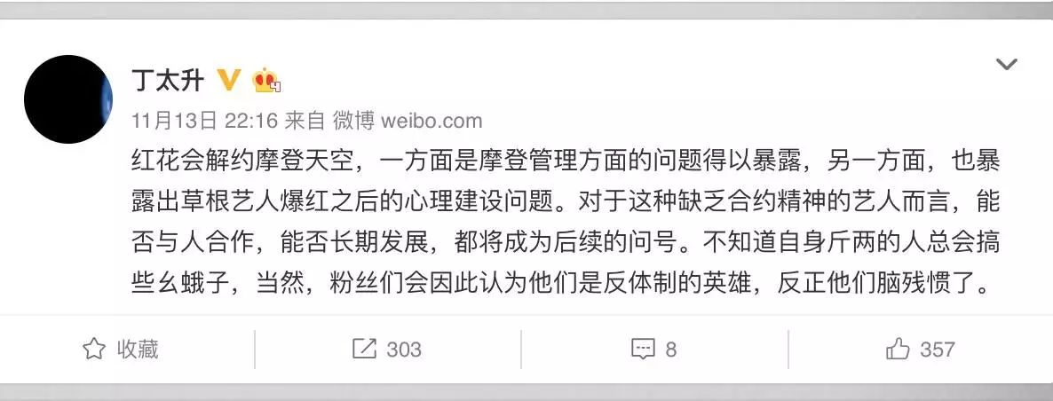 而摩登天空的运营失利也遭到了粉丝的指责。音乐博主“荷里活美不美”在本月初发博文指出: