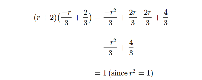 也就是说,(r+2)和 ((-r/3)+(2/3))即是乘法逆元。