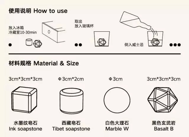 大理石:选用白色浅纹大理石制作圆球形冰酒石块,质地通透清凉,洁白无瑕,圆形营造出光泽,高贵雅致。