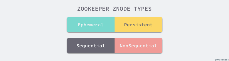 Znode 其实有 PERSISTENT、PERSISTENT_SEQUENTIAL、EPHEMERAL 和 EPHEMERAL_SEQUENTIAL 四种类型,它们是临时与持久、顺序与非顺序两个不同的方向组合成的四种类型。