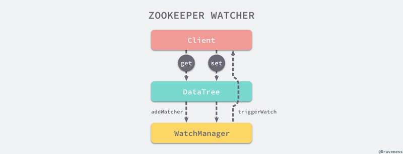Zookeeper 中的所有数据其实都是由一个名为 DataTree 的数据结构管理的,所有的读写数据的请求最终都会改变这颗树的内容,在发出读请求时可能会传入 Watcher 注册一个回调函数,而写请求就可能会触发相应的回调,由 WatchManager 通知客户端数据的变化。