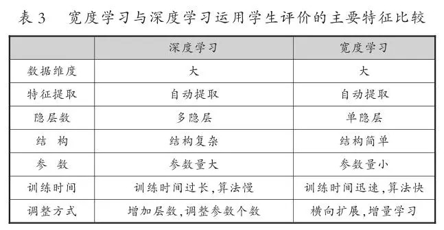 当新增加一个特征时,不需要向深度学习系统一样重新推翻网络计算所有权重,而建立新的模型结构。相反,宽度学习系统的输入值X和输出值Y并不直接影响权重值,权重值是通过与增强节点H做关联。因此,当新增一个特征时,只需将新特征与增强节点7做计算就可以使用了,而不影响整个系统的参数设置。宽度学习应用于学生评价的优势与深度学习对比,如表3所示。