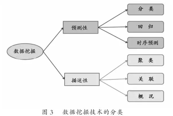 大量机器学习中的数据挖掘技术,已经被成功应用于教育领域。这些数据挖掘技术,可以分为描述性和预测性两大类(如图3所示)。[17]描述性的数据挖掘任务是对目标数据集中数据的属性进行特征描述,主要包括聚类(Clustering)、关联(Association)和概括(Summarization);预测性的挖掘任务是对当前数据进行归纳以进行预测,主要有分类(Classification)、回归(Regression)和时序预测(Time-Series Prediction)。而宽度学习基于其内部算法和系统结构,它在教育应用中主要可以通过分类、回归、聚类和时序预测)等挖掘技术手段,作用于教育大数据。