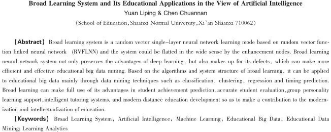 关键词:宽度学习;人工智能;机器学习;教育大数据;教育数据挖掘;学习分析