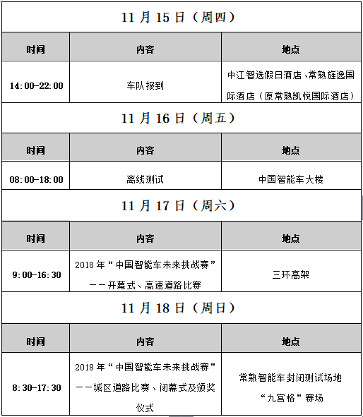 地点:中国智能车大楼、三环高架赛场和常熟智能车封闭测试场地“九宫格”赛场