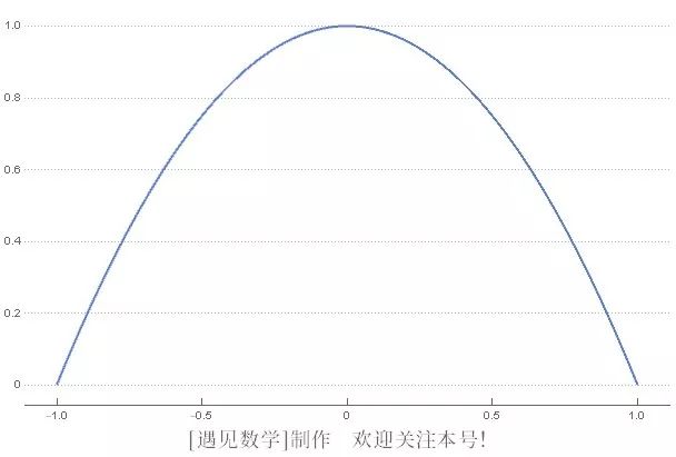回到 17 世纪,随着导数和原函数概念的出现,以及相应算法的建立,许多求面积,甚至求体积、长度、重心……的问题都被简化为简单的计算。一类问题的解法系统化了,求解起来容易了,人们就可以探索更广阔的数学世界。古代的数学家已经求出了某些图形的面积,而 17 世纪的数学家走得要远得多。要求出某些复杂曲线,比如 在 -1 和 1 之间围成的面积,古代数学家会头疼不已,然而对于 17 世纪的数学家来说就是小菜一碟:只要计算