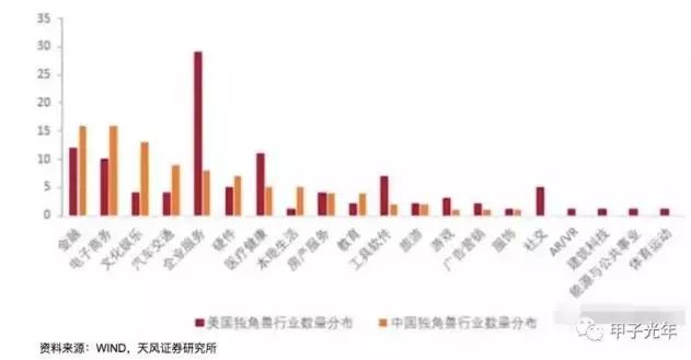 据天风证券本月发布的一项宏观研究显示:中国独角兽企业数量仅次于美国,但主要集中在互联网金融、电子商务、文化娱乐、生活服务等领域,在硬件、软件、科技、制造这些领域,独角兽依然稀缺。