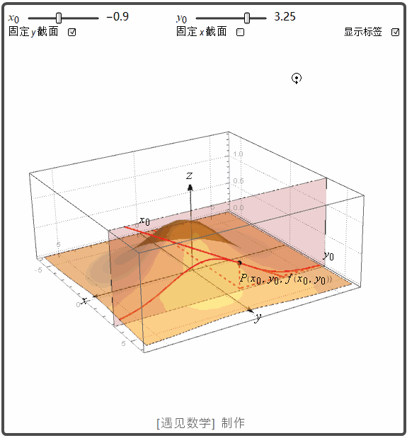 割曲面 z=f(x,y) 得到曲线 z=f(x,y0)