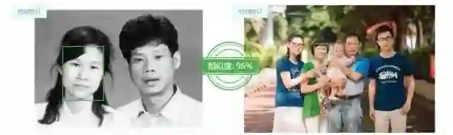 在AI的检测下,结婚照中的妈妈和全家福中的妈妈具有96%的超高相似度!不论沧海如何桑田,岁月留给妈妈的只有更深的笑容呐~