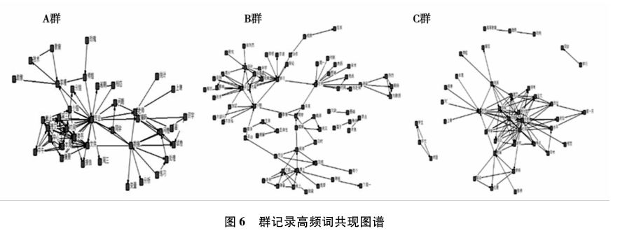 为了保护个人隐私,本研究遵循“先匿名编号再计算”的原则,把三个群分别编码为A、B、C,群成员用An、Bn、Cn表示。