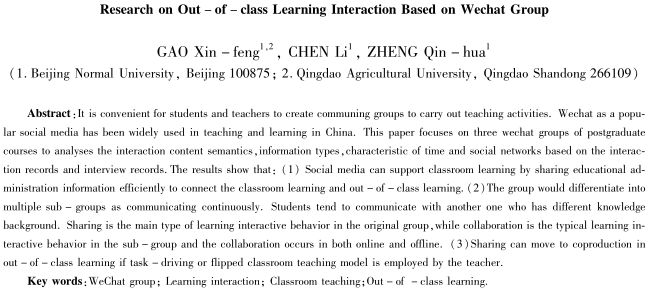 关键词:微信群;教学交互;课堂教学;课外学习