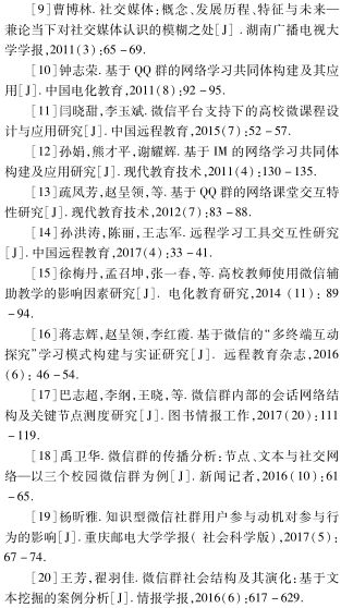总体来看,缺少对于学生自发建立的微信学习群的交互规律的研究,此类应用场景因缺少教师的参与、属于非正式学习而被研究者忽略,但在高校教学过程中普遍存在,值得引起研究者的关注。