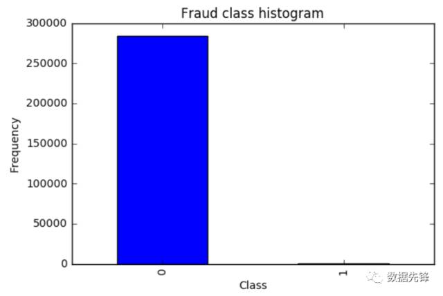 千万不要着急去用机器学习算法建模做这个分类问题。首先我们来观察一下数据的分布情况,在数据样本中有明确的label列指定了class为0代表正常情况,class为1代表发生了欺诈行为的样本。从上图中可以看出来。。。等等,你不是说有两种情况吗,为啥图上只有class为0的样本啊?再仔细看看,纳尼。。。class为1的并不是木有,而是太少了,少到基本看不出来了,那么此时我们面对一个新的挑战,样本极度不均衡,接下来我们首先要解决这个问题,这个很常见也是很头疼的问题。