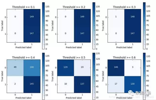 对于逻辑回归算法来说,我们还可以指定这样一个阈值,也就是说最终结果的概率是大于多少我们把它当成是正或者负样本。不用的阈值会对结果产生很大的影响。