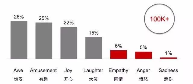 一般认为,转发是一种情绪,而不是一种深思熟虑的理性行为。所以,LinkedIn分析公众阅读量10万+文章的情绪因素,结论是“惊叹、有趣、开心”这三种情绪是最多的,而且都是正面情绪。