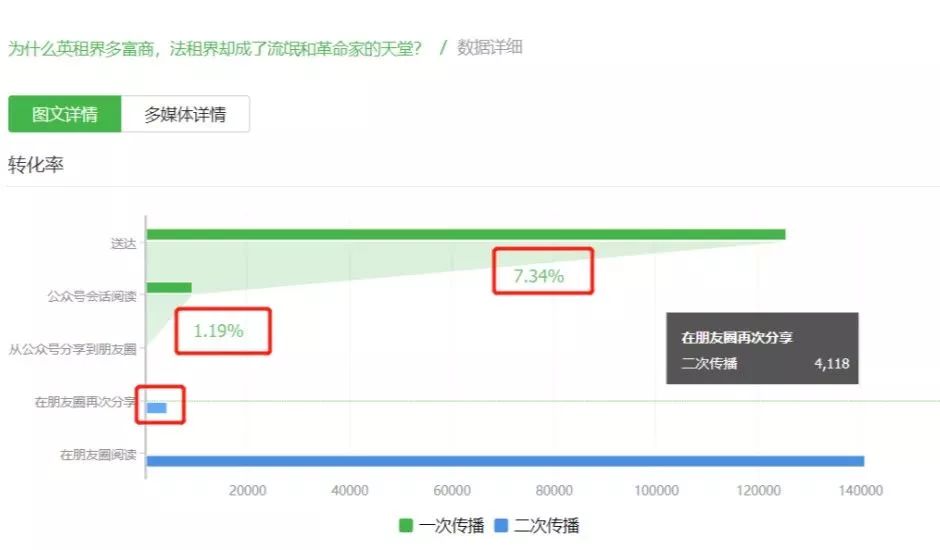衡量这个动作的指标,是微信提供的“号内转发率”,也就是“从公众号转发到朋友圈的人数”占“打开公众号的人数”的比例。