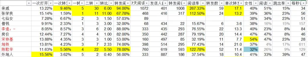 这里有两个关键动作:打开、转发。微信没有直接的数据,我是用自己计算的“单次转发阅读人数”和“号内号外转发比”来评估的。