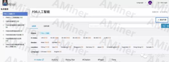 进入如下页面后,如果大家觉得左边的库里缺少了哪个学者,可以点击图中的“添加专家”。