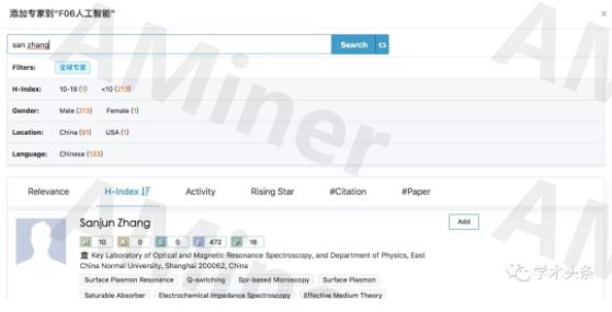 进入如下页面后,我们可以直接搜索想要添加的学者姓名,例如“san zhang”,点击“Add”进行添加。