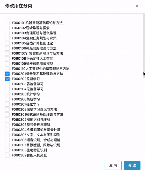 如果大家认为某位学者的分类有误,可以进行修改,并且可以勾选多个分类