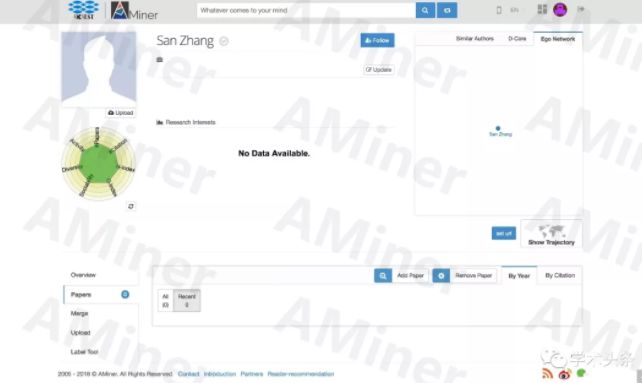 若该学者页面下无论文,可在papers页面进行添加并上传论文。