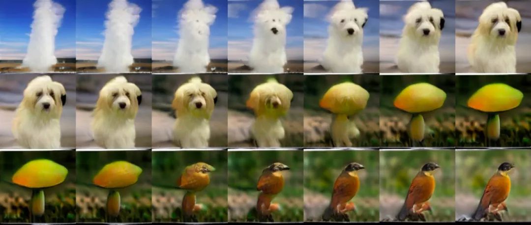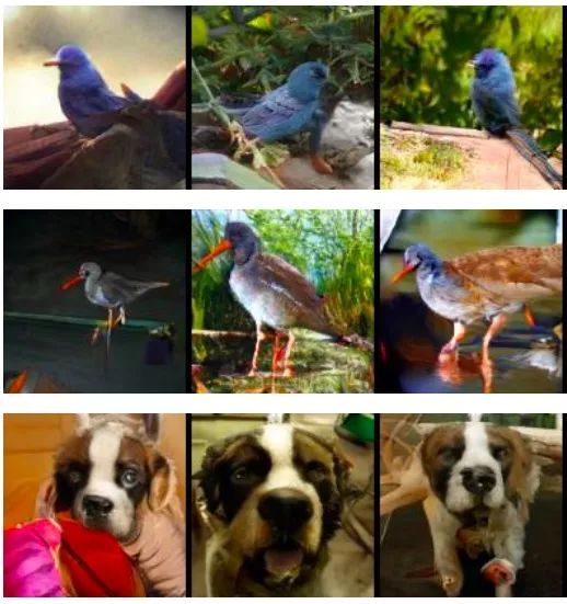 例如非常先进的ImageNet GAN模型cGAN,它只需一些简单的结构特征就能生成各类图像,如下图所示,它在生成毛发质地上表现出色,但还是没法描绘出动物腿部的清晰轮廓。