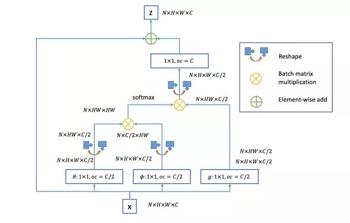 Non-local Neural Networks结构图 来源:@知乎Gapeng