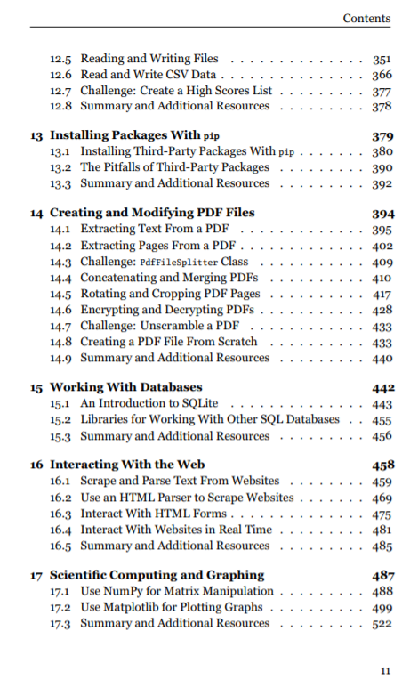 Python的实际使用:创建和修改PDF文件、使用数据库、从web下载和抓取内容、数据科学基础(科学计算和绘图)、图形用户界面和GUI编程