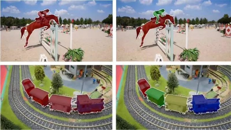 DAVIS-2016 (左) 和 DAVIS-2017 (右) 的主要区别:多实例分割