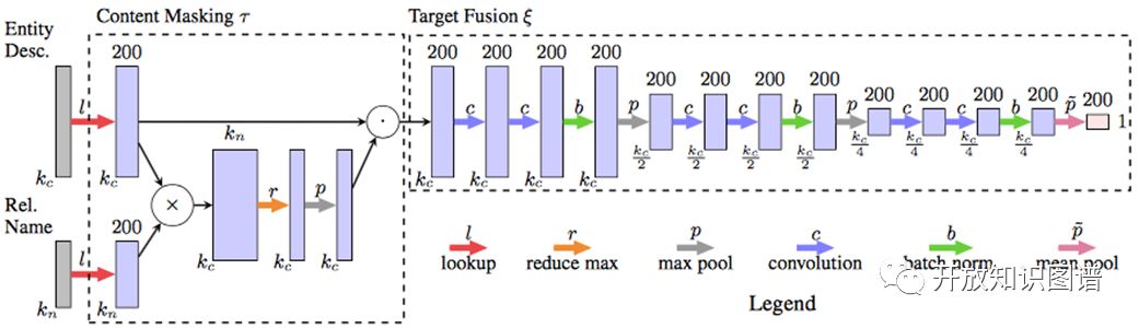 (2) Target fusion:从相关文本抽取目标实体的 embedding(用FCN即全卷积神经网络的方法);这个部分输入是masked content matrix,每层先有两个 1-D 卷积操作,再是sigmoid激活函数,然后是 batch normalization,最后是最大池化。