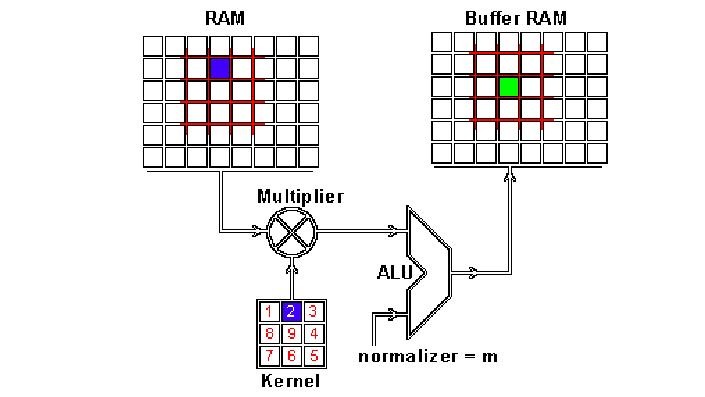 你可能注意到这里有个正规化因子m,这里m的值为kernel的大小9;这是为了保证输入图像和feature map的亮度相同。