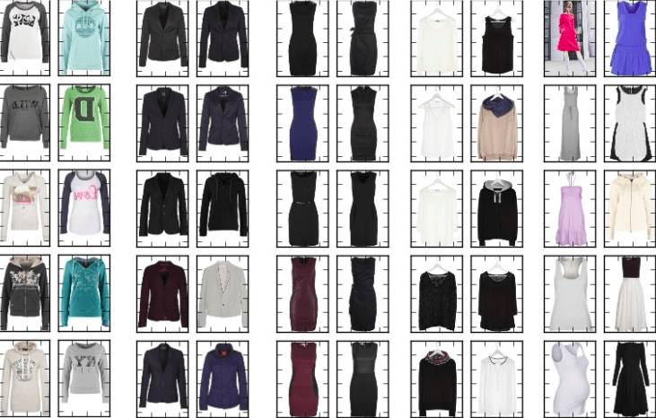 图像中可能含有很多我们不关心的噪音。一个好例子是我和Jannek Thomas在Burda Bootcamp做的项目。Burda Bootcamp是一个让学生像黑客马拉松一样在非常短的时间内创造技术风暴的实验室。与9名同事一起,我们在2个月内做了11个产品出来。其中之一是针对时尚图像用深度编码器做的搜索引擎:你上传一幅时尚服饰的图片,编码器自动找出款式类似的服饰。
