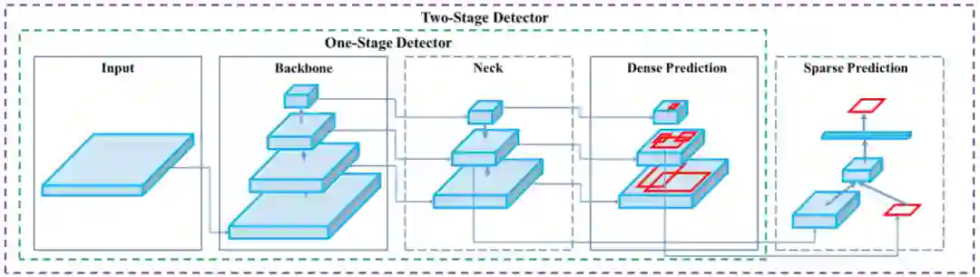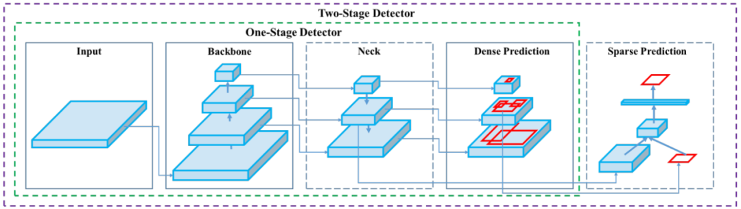 单阶段(One-Stage)与双阶段(Two-Stage)检测器图示。