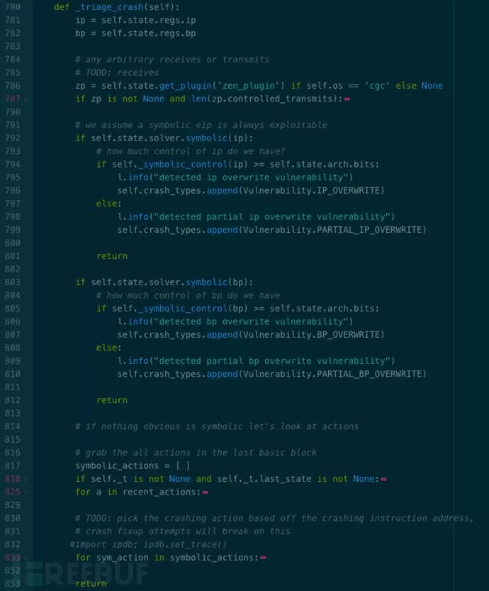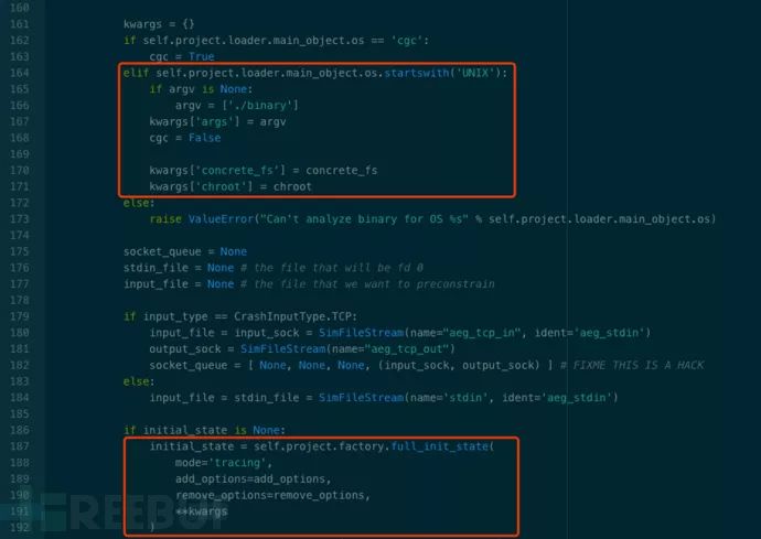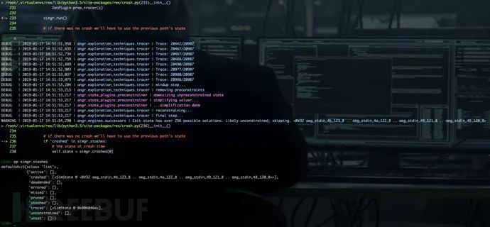 Rex在实现混合符号执行时,首先使用QEMU进行Concrete Execution,在获取到Crash状态后,使用Angr进行Concolic Execution,相关功能封装在Crash类中。