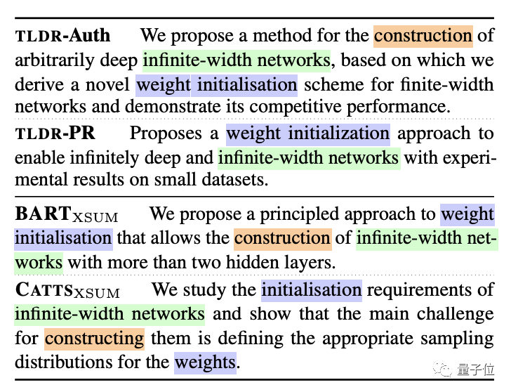举个例子,下图中上边的格子中是摘要,简介,结论中相对重要的段落和句子。TLDR会标记出突出的部分,然后组合成一个新的句子。