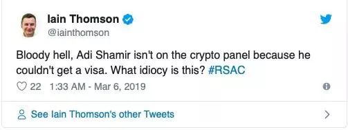 Adi Shamir 过去每年都会在 RSA 信息安全大会上发表演讲,直到今年遭遇拒签事件。