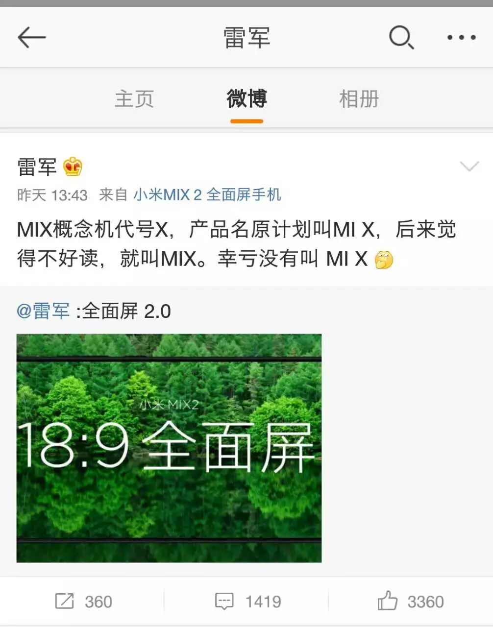2、雷军:小米MIX命名差点撞车苹果iPhone X