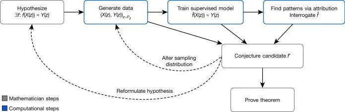 DeepMind 的科学家在他们的论文中提出,人工智能可以用来“协助在数学研究中发现最前沿的定理和猜想”。他们提出了一种“通过机器学习的强大模式识别和解释方法来增强标准数学家的工具包”的框架。