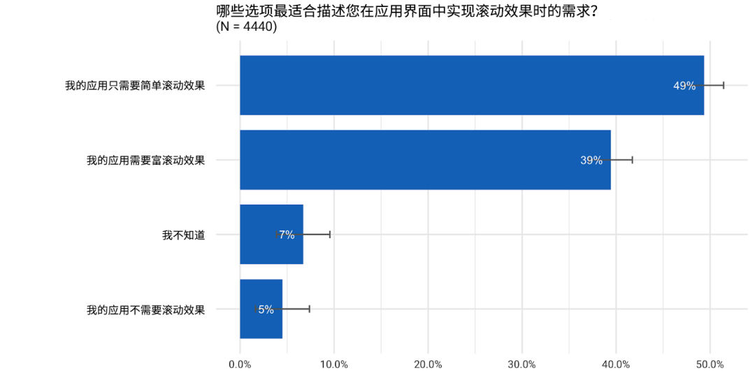 在想用 Sliver 实现丰富滚动效果的用户中,有 79% 实际进行了尝试。最大的问题是难以找到符合需求的 widget (36%)。
