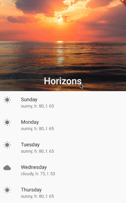 Sliver widgets (名字以 "Sliver" 开头的 widgets,例如 SliverAppBar 和 SliverList) 用于创建丰富滚动效果。虽然很多滚动效果可以通过 ListView、GridView、PageView 或 AnimatedList 等 widgets 来实现,但 Sliver widgets 可用于自定义滚动视图,打造更漂亮的界面。