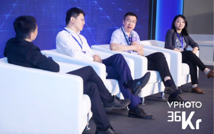在“产业创新峰会”的最后环节,中化商务有限公司研究院副院长韩凯儒、微软加速器(北京) CTO王雷先⽣以及施耐德中国区创新孵化负责人张晶钰共同参与了由36氪合伙⼈兼副总裁李政主持的圆桌讨论。