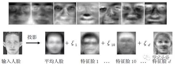 Eigenfaces选择的空间变换方法是PCA(主成分分析),利用PCA得到人脸分布的主要成分,具体实现是对训练集中所有人脸图像的协方差矩阵进行本征值分解,得到对应的本征向量,这些本征向量就是“特征脸”。每个特征向量或者特征脸相当于捕捉或者描述人脸之间的一种变化或者特性。这就意味着每个人脸都可以表示为这些特征脸的线性组合。